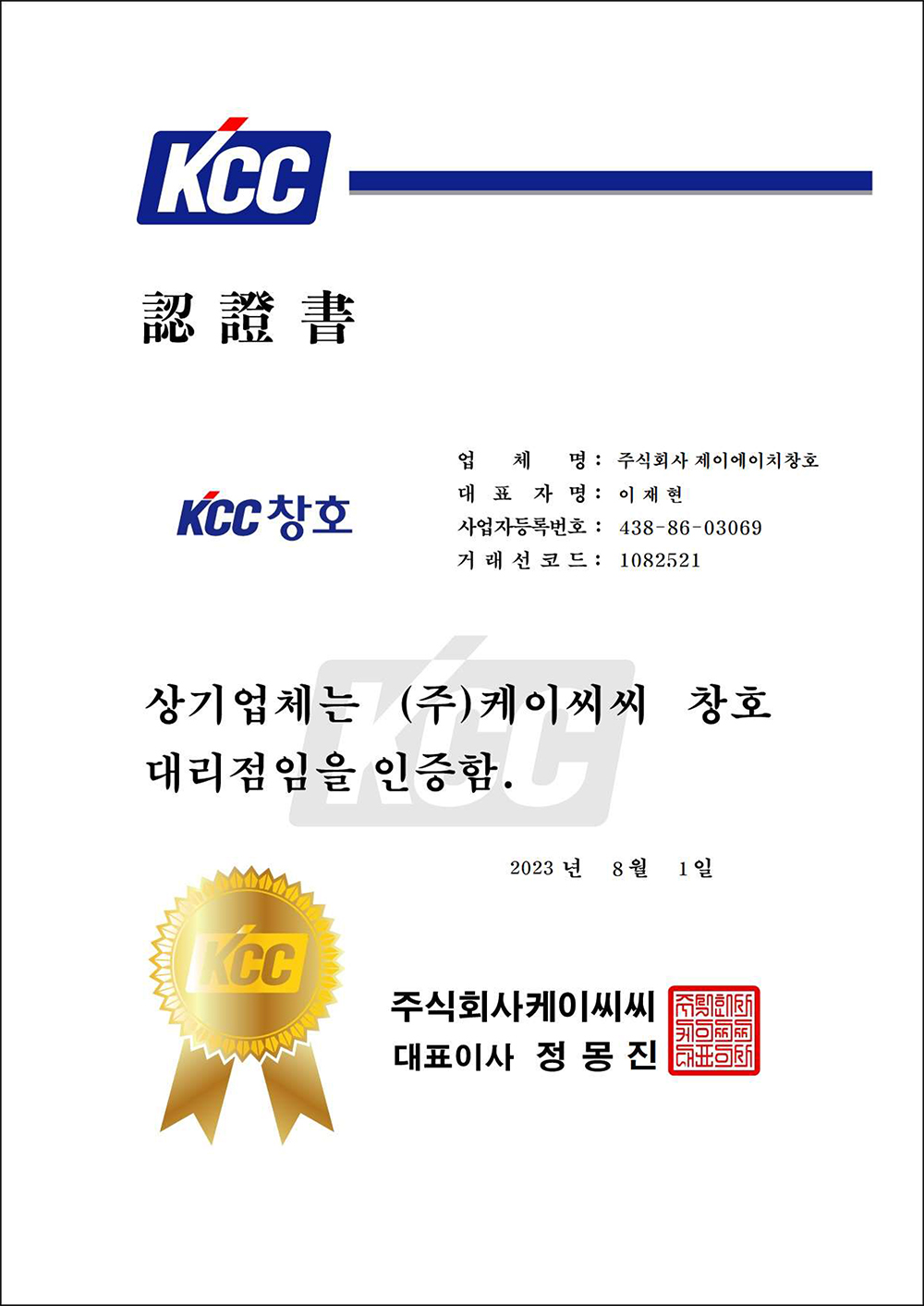 브랜드파워1위인 KCC의 공식인증을 받은 대리점